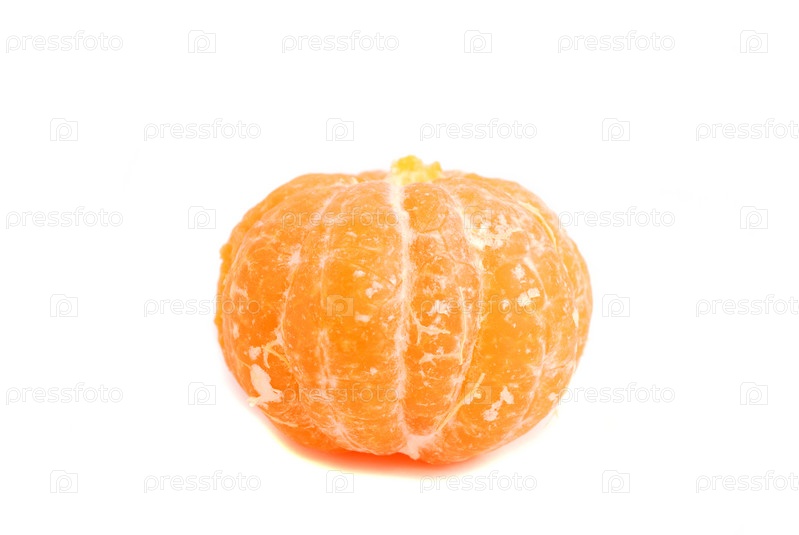 Очищенный мандарин на белом фоне