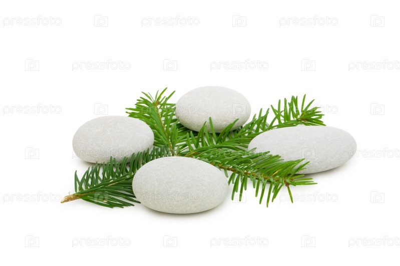 Спа-концепция с зеленой ветвью и гальками