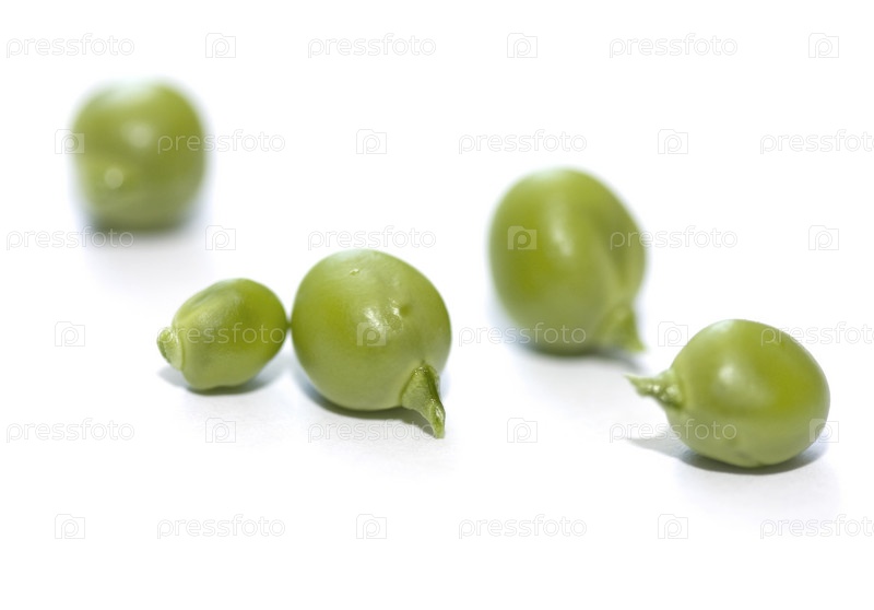 Несколько зеленых горошин, изолированных на белом фоне