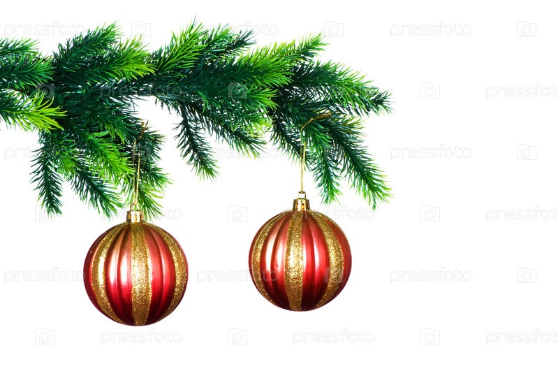 Рождественские шары на елке на белом фоне