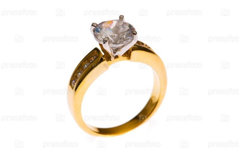 Золотое колечко на белом фоне