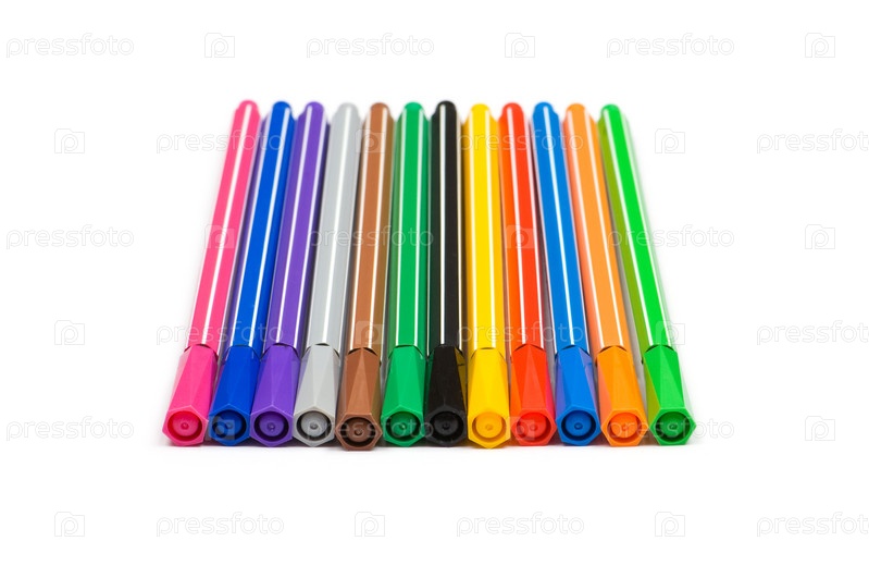 Разноцветные фломастеры на белом фоне