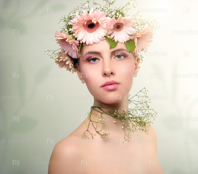 Красивая девушка в венке из цветов