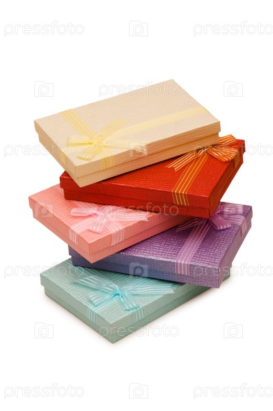 Разноцветные подарки на белом фоне
