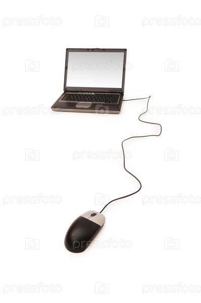 Ноутбук с мышью, изолированной на белом фоне