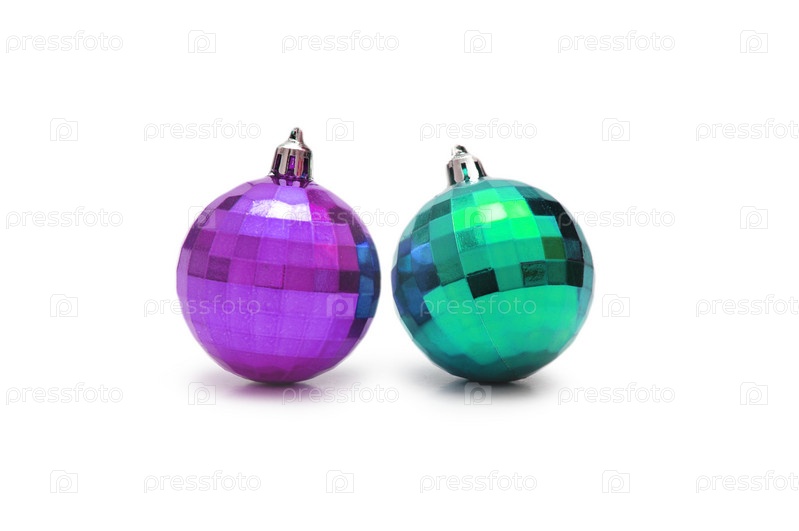 Два новогодних шарика на белом фоне