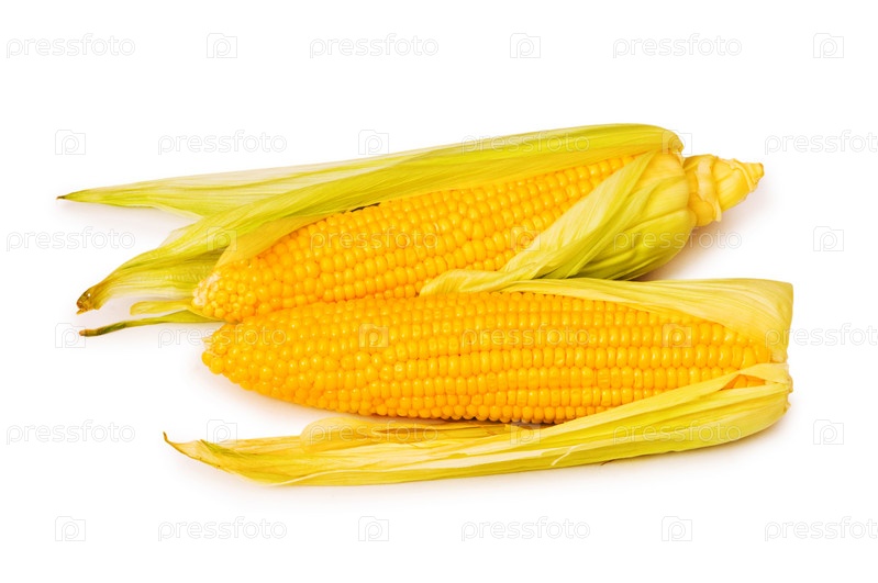 Два кукурузных початка на белом фоне