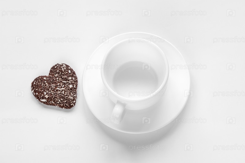 Чашка, блюдце и шоколадное кокосовое печенье