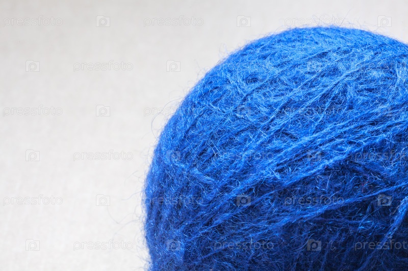 Моток голубой шерстяной пряжи на картонном фоне