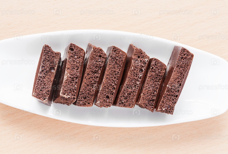 Пористый шоколад на тарелке