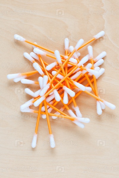 Ушные палочки, разбросанные на столе