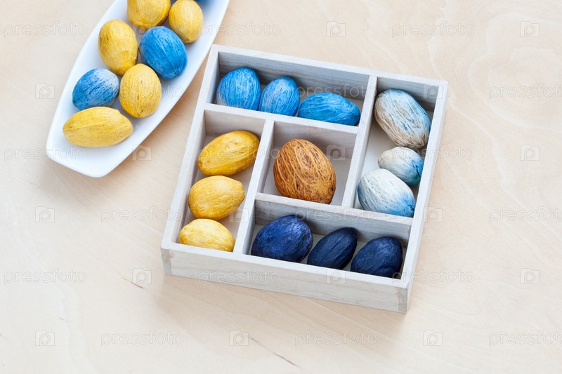 Блюдо с орехами рядом с коробкой, полной орехов