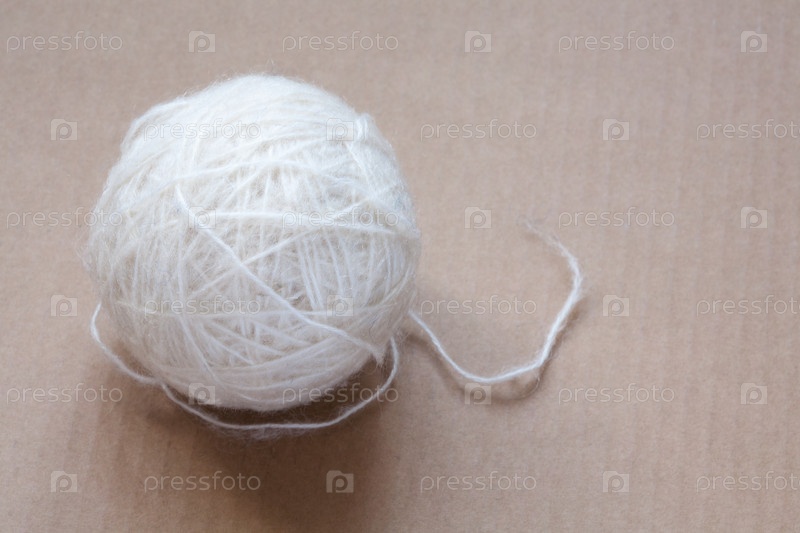 Моток белой шерстяной пряжи на картонном фоне