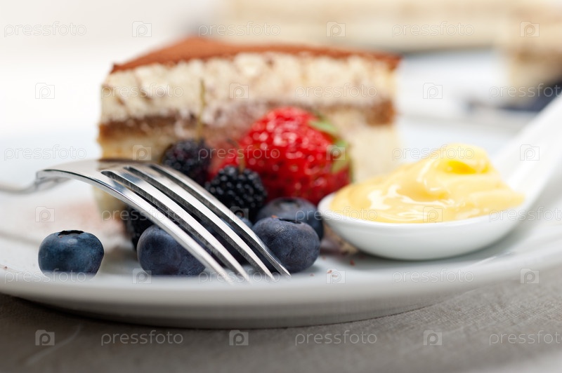 Десерт тирамису с ягодами и сливками