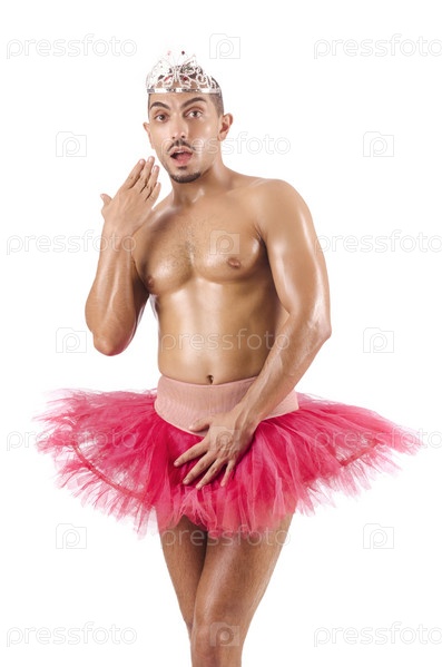 Мужчина в балетной пачке, изолированный на белом фоне