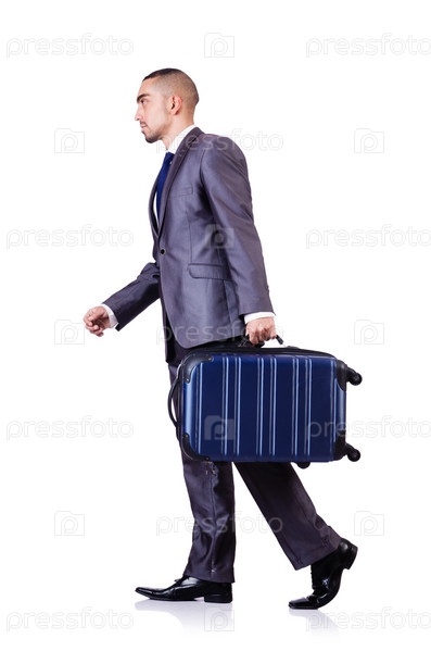 Бизнесмен с багажом на белом фоне