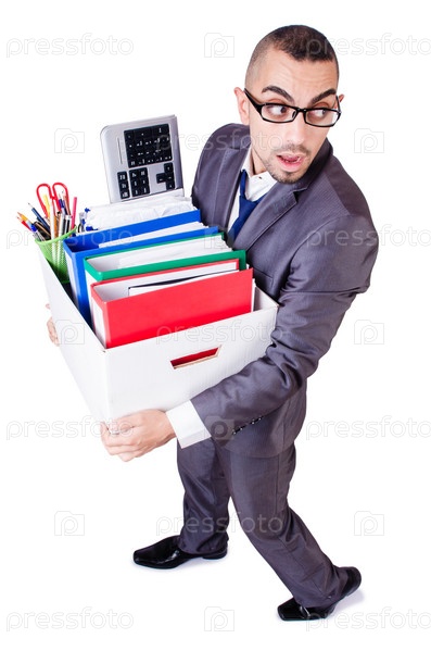 Уволенный мужчина с коробкой личных вещей