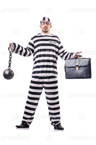 Осужденный преступник в полосатой форме