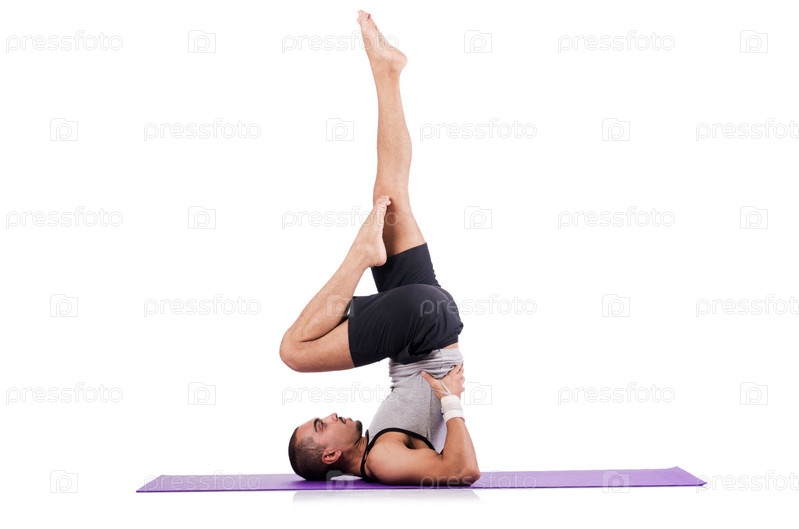Человек делает упражнения на белом фоне