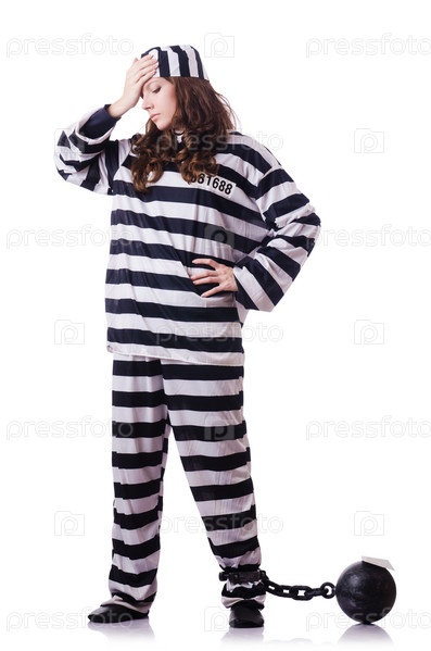 Осужденный преступник в полосатой форме