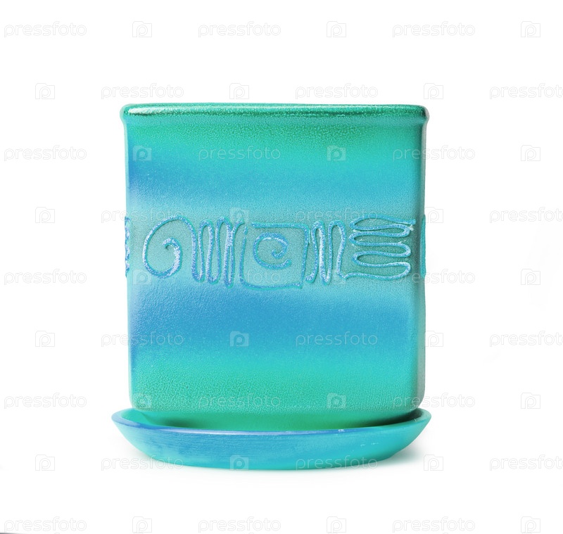 Красивый голубой горшок на белом фоне