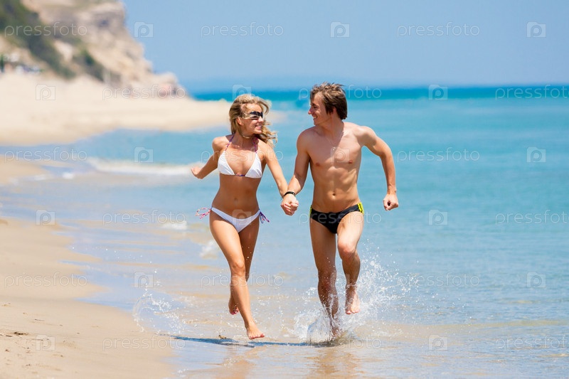 Молодая счастливая пара на пляже