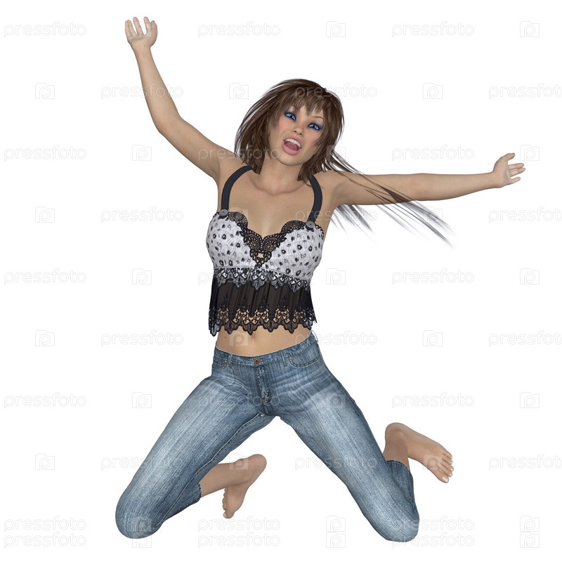 Счастливая девушка прыгает