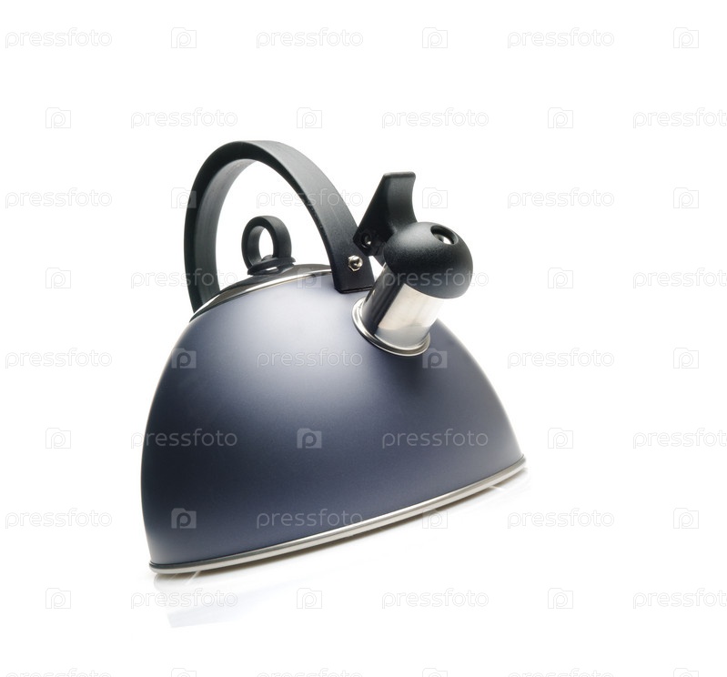 Металлический чайник на белом фоне