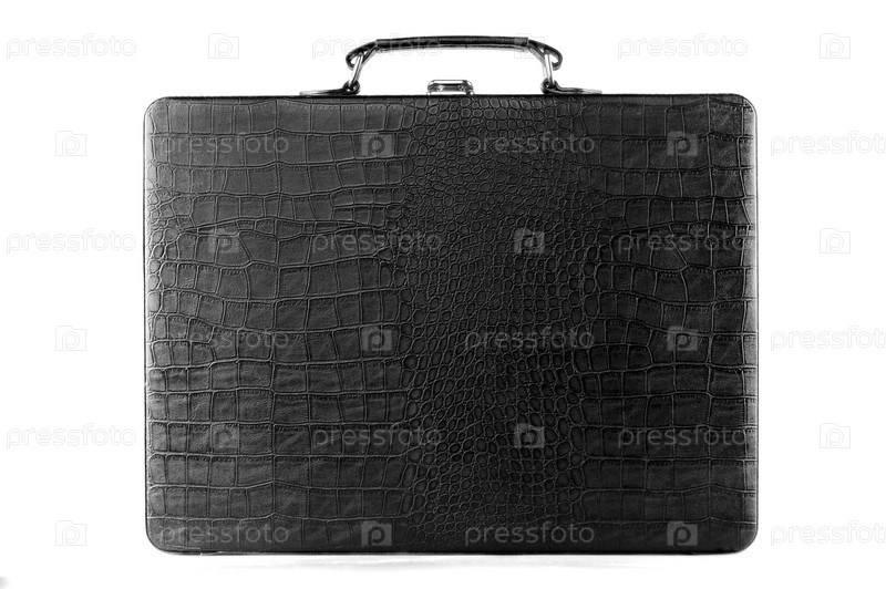 Черный кожаный чемодан на белом фоне