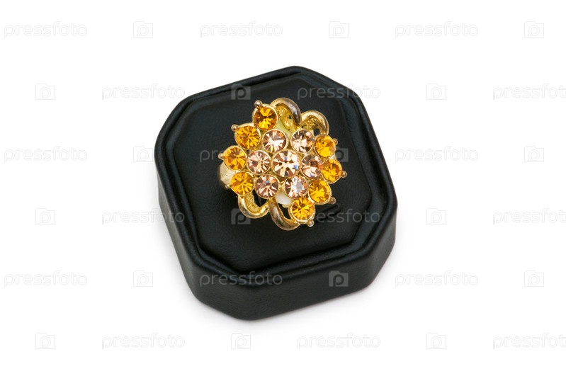 Кольцо на подставке на белом фоне