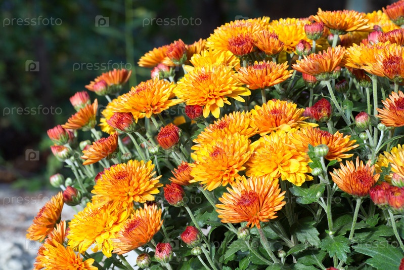 Оранжевые осенние хризантемы