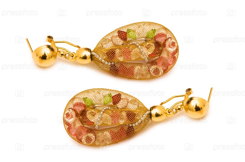 Серьги с разноцветными камнями на белом фоне