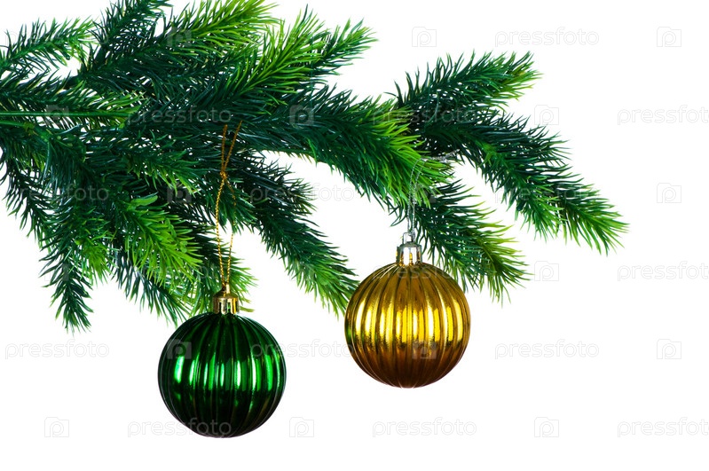 Новогодние шарики на елке на белом фоне