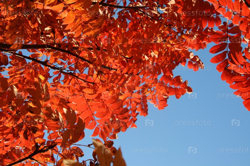 Красные листья на фоне голубого неба