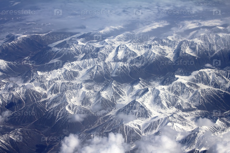 Снежный узор, облака и камни: вид с высоты
