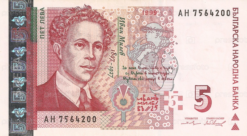 Банкнота 5 болгарских левов образца 1999 года. Лицевая сторона