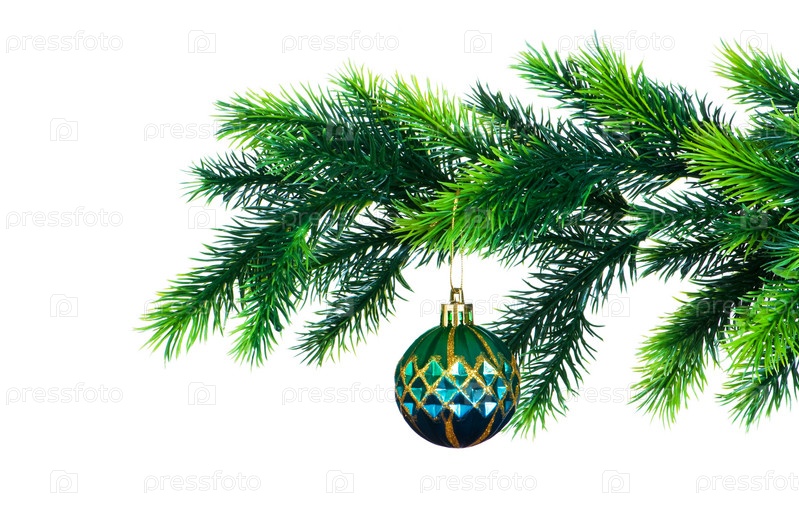 Красивый шарик на ветке на белом фоне