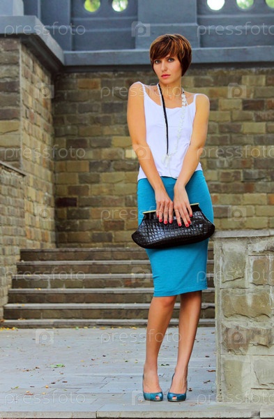 Девушка приятной внешности в городских стенах