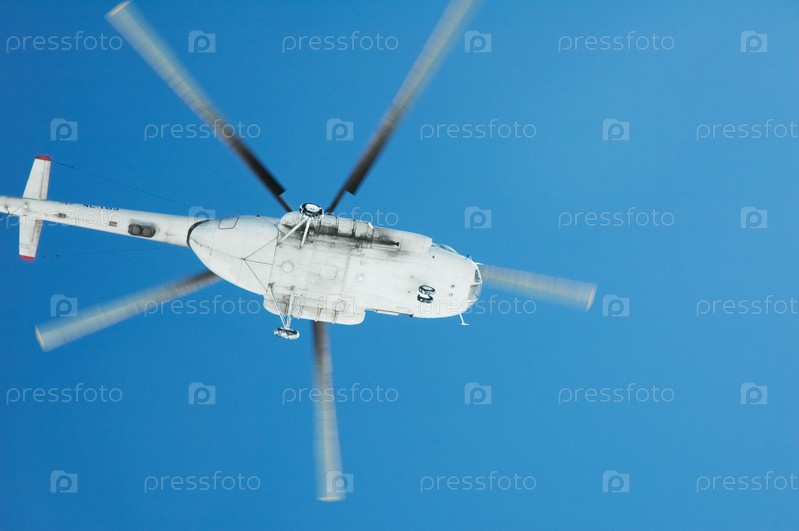 Летящий вертолет в небе