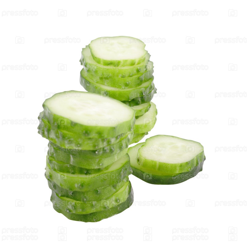 Ломтики свежего огурца на белом фолне