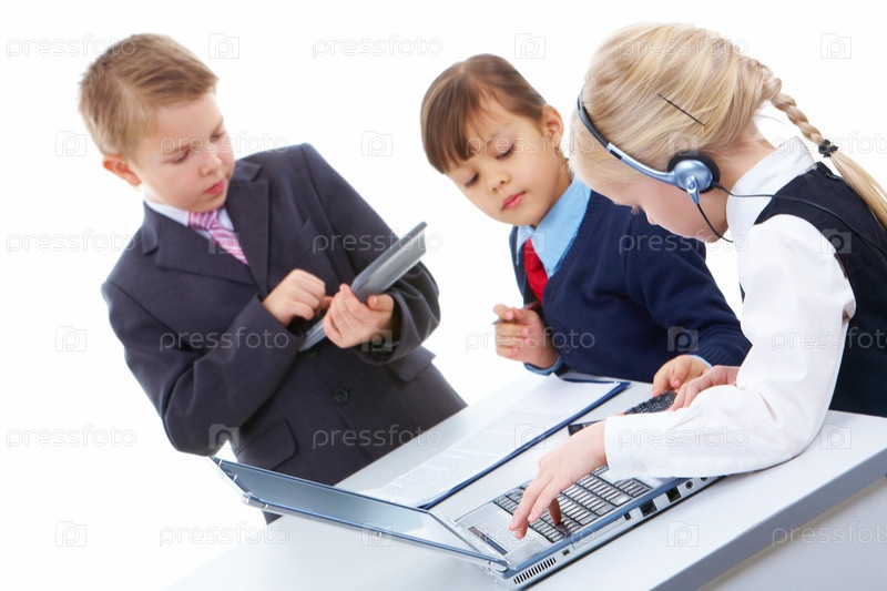 Дети-бизнесмены работают в команде