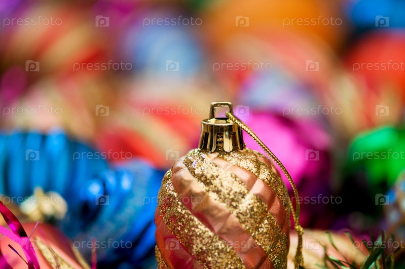 Разноцветные елочные игрушки крупным планом