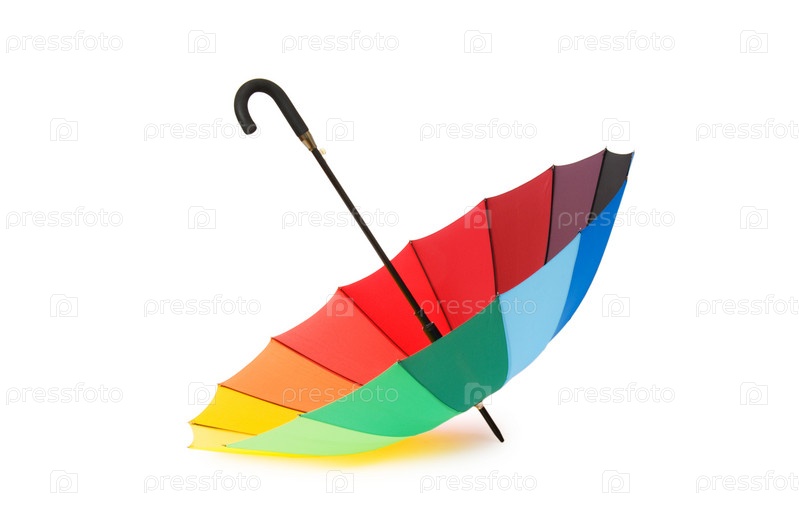 Разноцветный радужный зонт на белом фоне