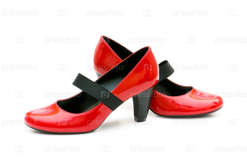 Красные лакированные женские туфли на белом фоне