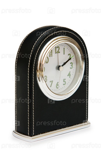 Настольные черные часы на белом фоне