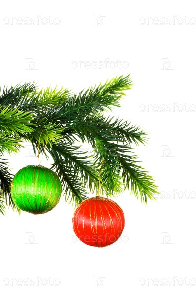 Зеленый и красный шары на новогодней елке