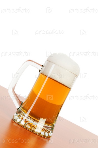 Кружка пива с пеной на белом фоне