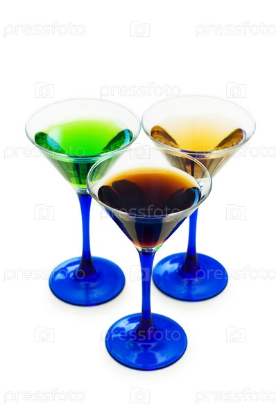 Разноцветные коктейли на белом фоне
