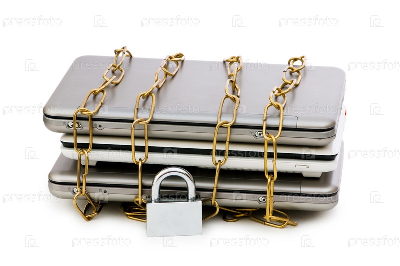 Концепция компьютерной безопасности с ноутбуком и цепью