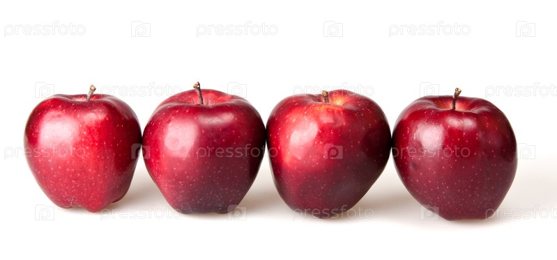Четыре красных яблока на белом фоне